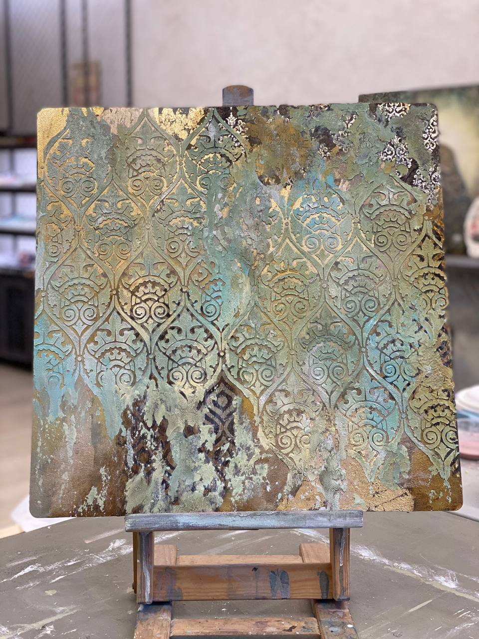 В прорези этого универсального инструмента удобно наносить краску различными способами: спонжем, круглой кистью или аэрографом. Трафарет легко вдавливается в глину, а также подходит для декоративной штукатурки. Для нанесения акриловых фактурных гелей наилучшим способом является использование шпателя, который также удобно использовать для удаления излишков краски без повреждения трафарета.