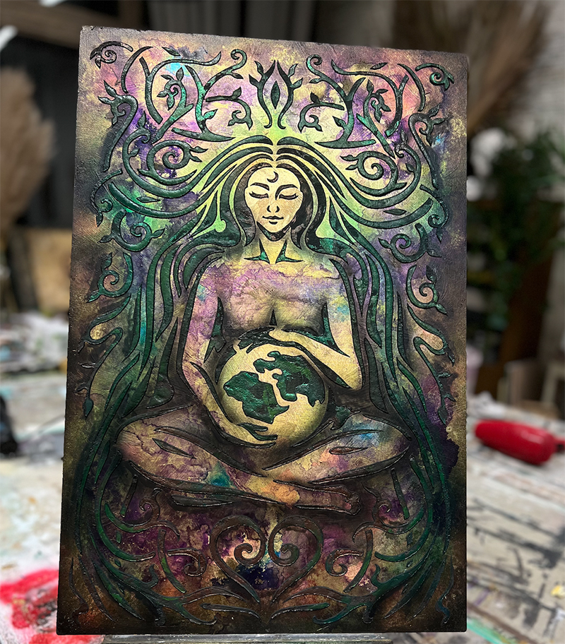 Многоразовый "Трафарет - Гайя" купить в Иркутск, Размер трафарета: 21.5х33, 40х60.